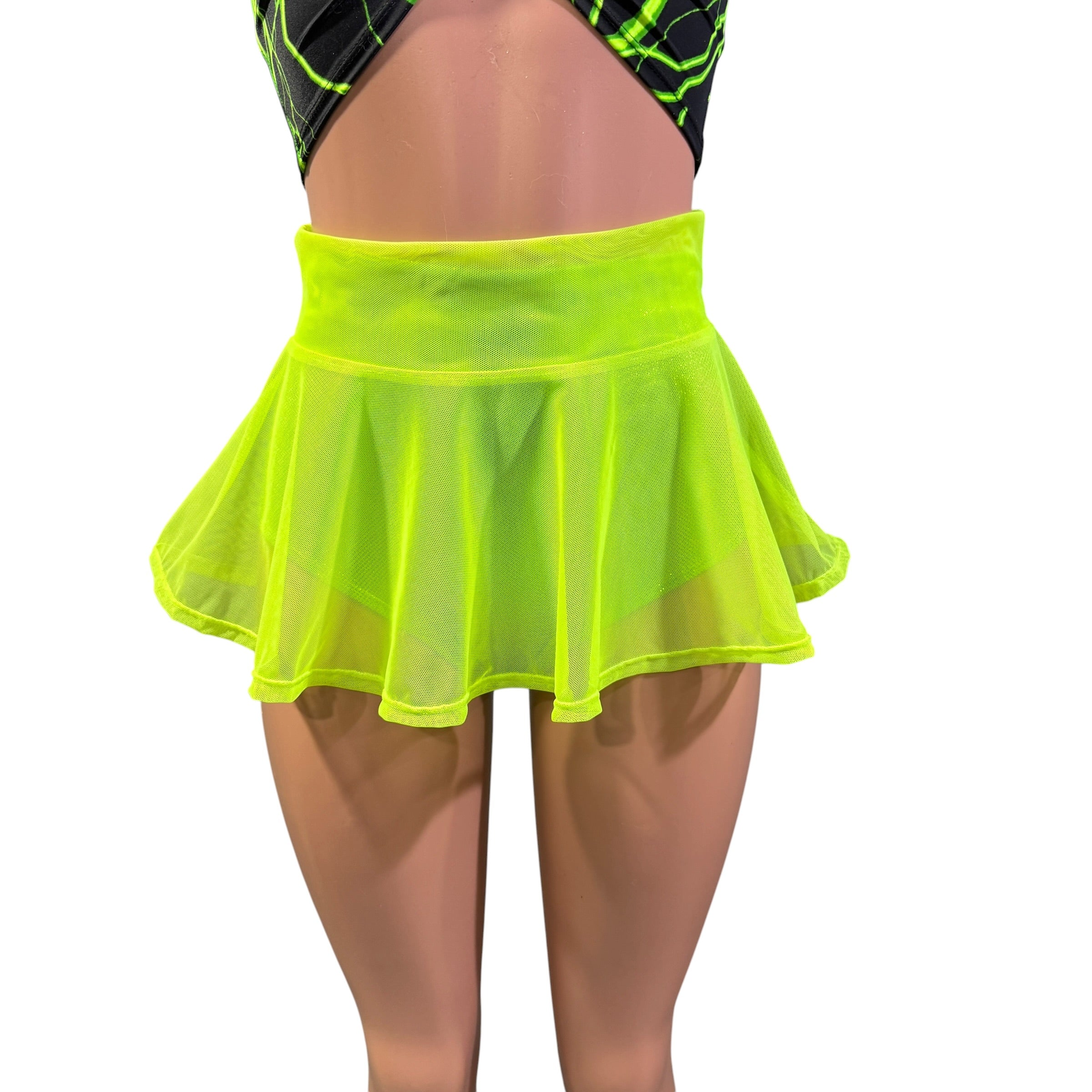 Neon Lime Green Mesh Super Mini 10" High Waisted Skater Skirt