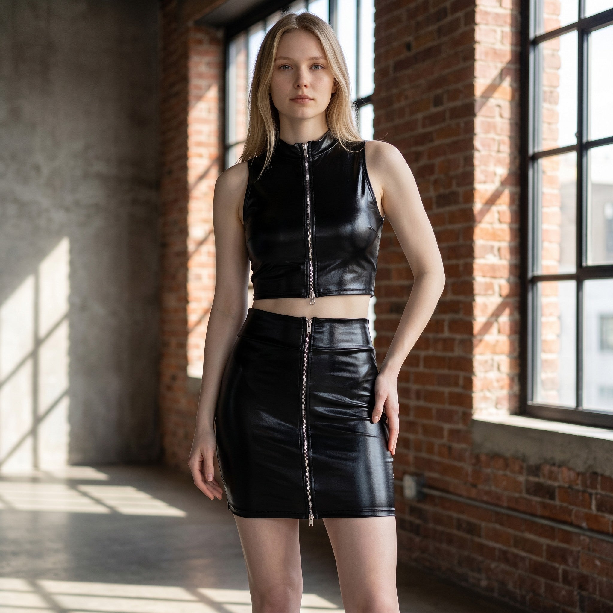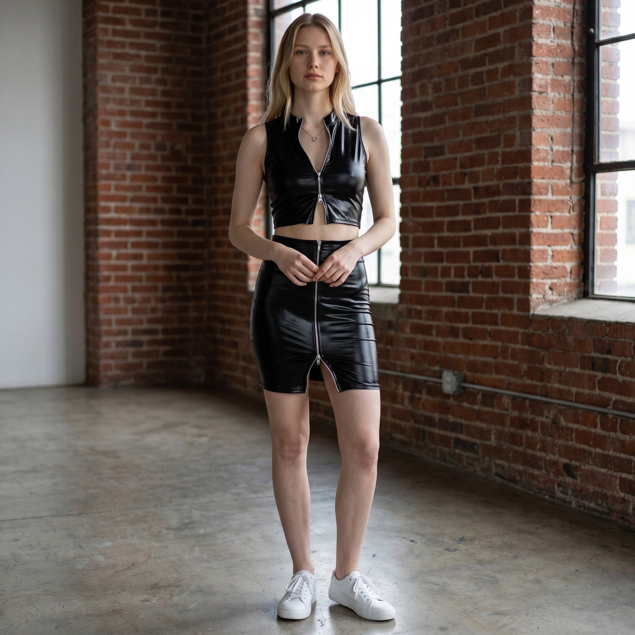 With a sleek, high-waisted fit and a bi-directional zipper, you can adjust the slit for just the right amount of edge—perfect for raves, festivals, clubwear, or a night out.