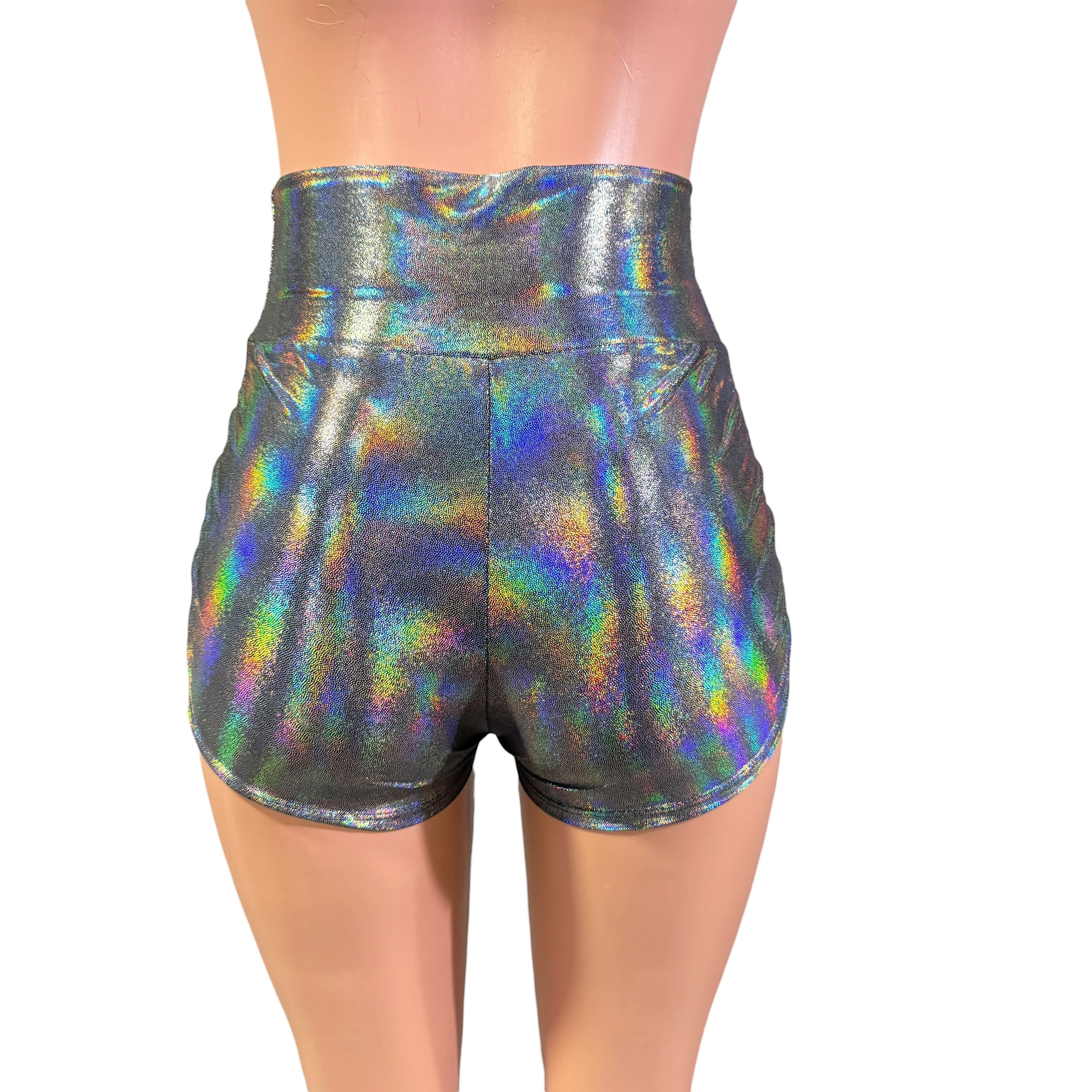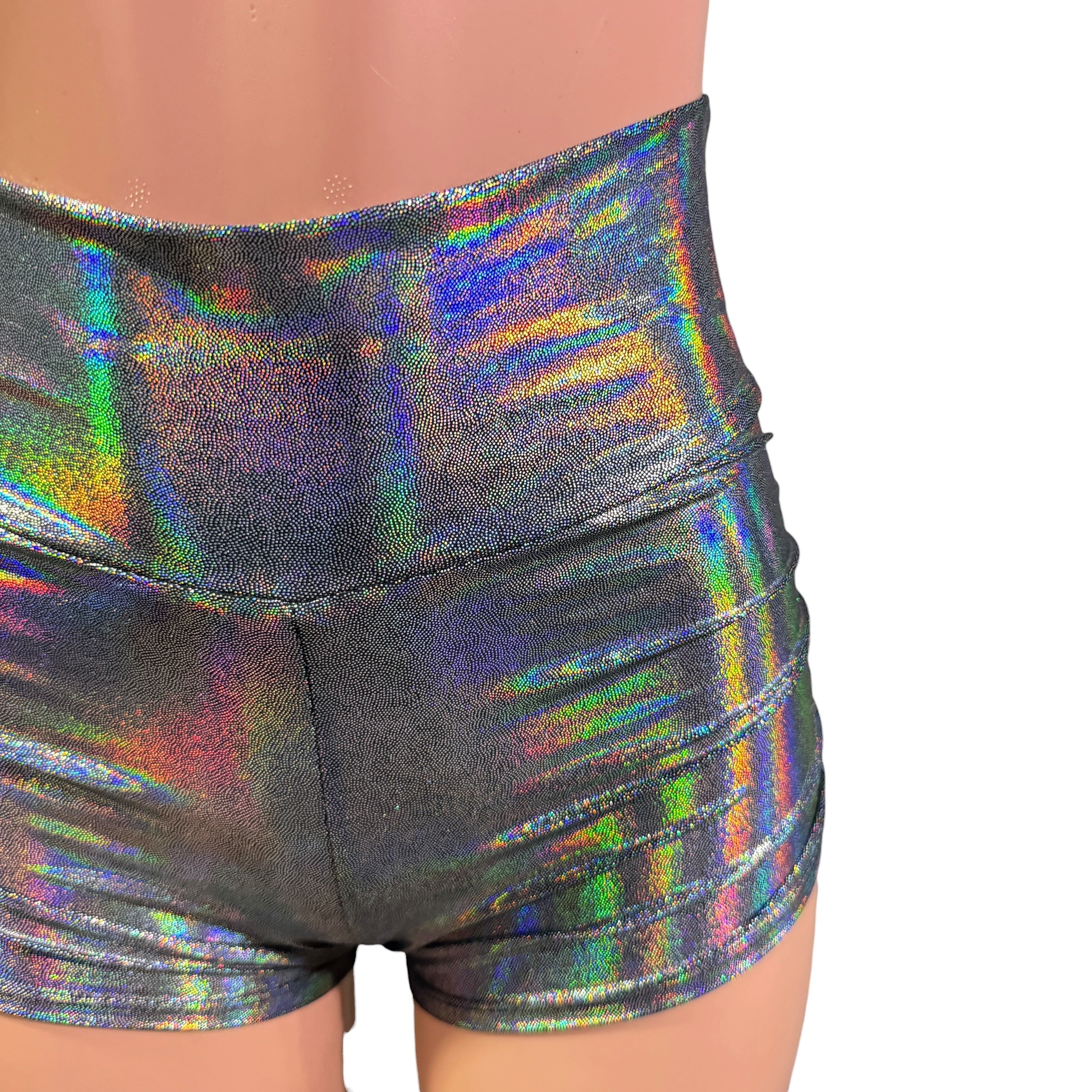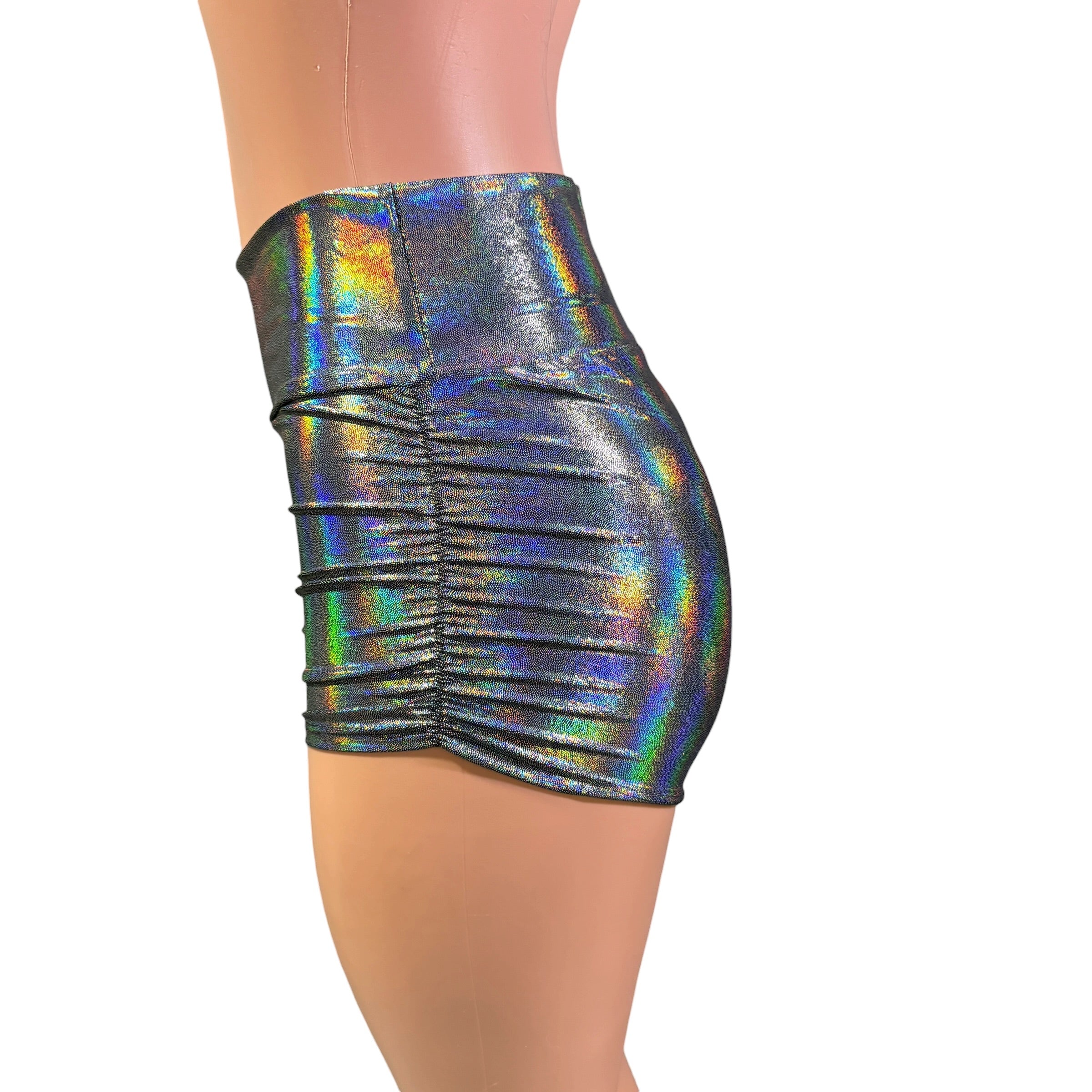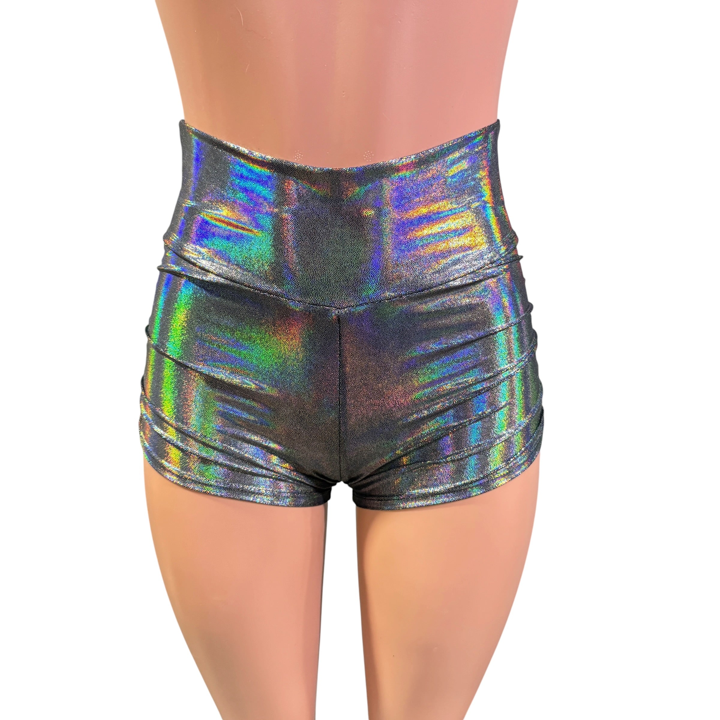 Sexier and more flattering! Our classic scrunch booty shorts made in gleaming silver holographic performance spandex with ruching on each side. Made to flatter your figure and move with you. The standard inseam is 2.5" - but can be customized. Choose between low-rise, mid-rise and high-waist (high-waist shown in photos). Please note - this listing is for the shorts only.